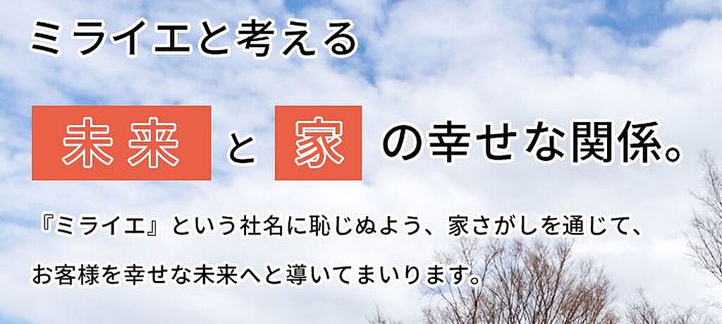 株式会社ミライエ[神奈川県知事 (3) 第 28184 号] 神奈川県川崎市多摩区宿河原2-26-1 【所属団体】 (公社)神奈川県宅地建物取引業協会 | ||||