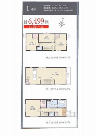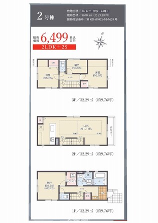 土地面積土地:70.15m2〜70.22m2 建物:96.87m2