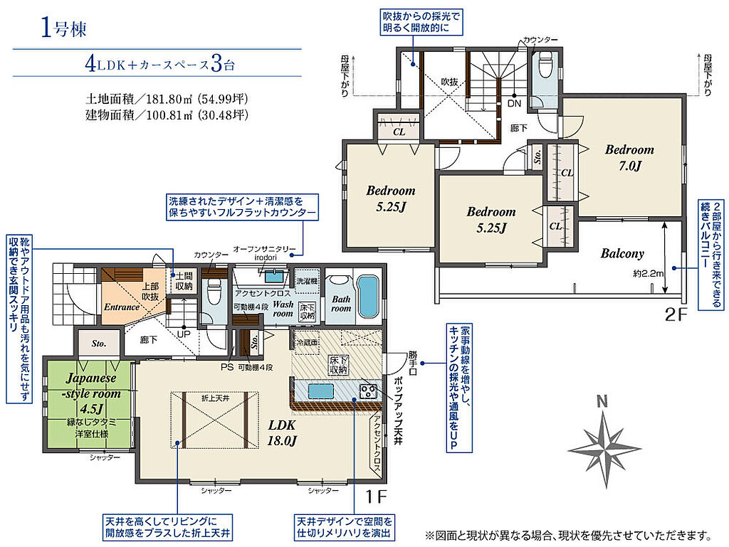 | 建物面積 | 100.81m2(約30.49坪) | 土地面積 | 181.80m2(約54.99坪) | ||
