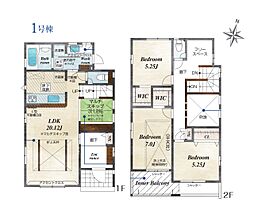 土地面積土地:133.71m2(約40.44坪)〜133.74m2(約40.45坪) 建物:99.78m2(約30.18坪)〜100.90m2(約30.52坪)