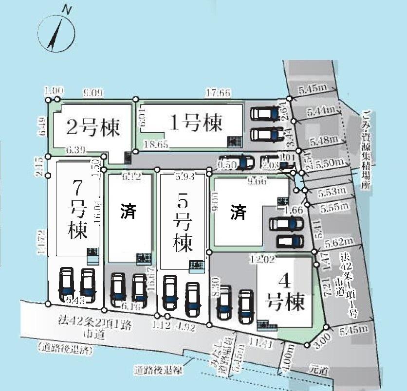 | 建物面積 | 96.39㎡~103.67㎡(実測) | 土地面積 | 101.99㎡~121.13㎡(登記) | ||