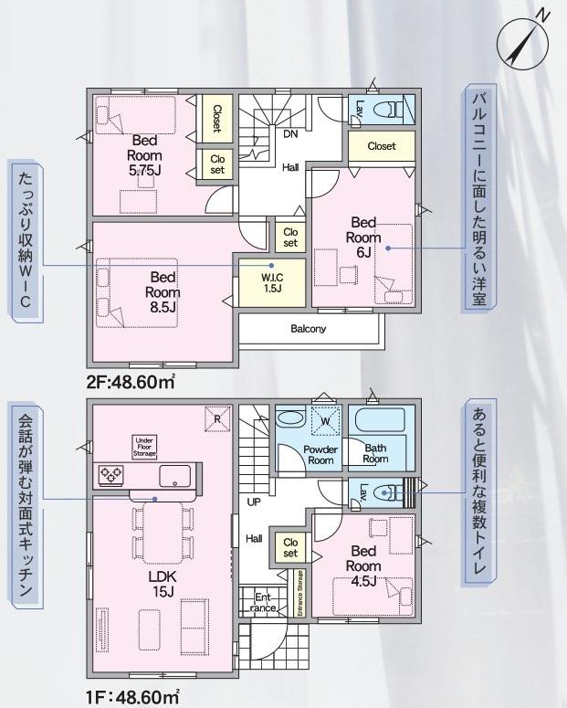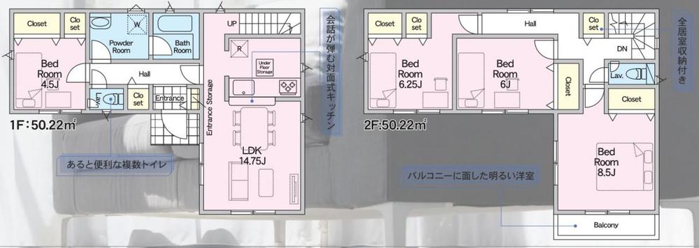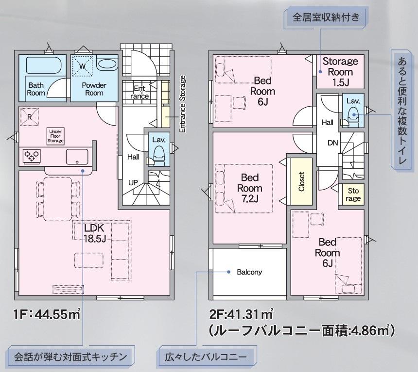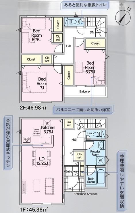 | 建物面積 | 85.86㎡~100.44㎡(実測) | 土地面積 | 102.62㎡~122.43㎡(実測) | ||