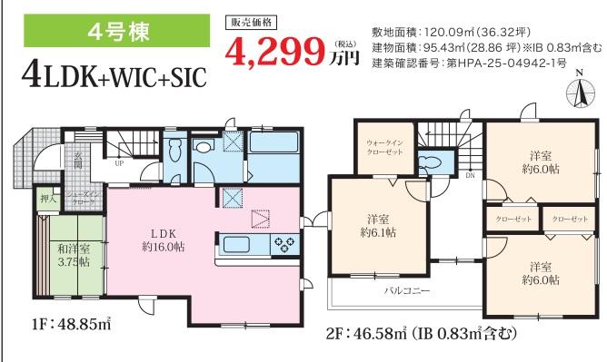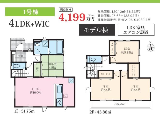 | 建物面積 | 95.43㎡~99.36㎡ | 土地面積 | 120.09㎡~141.71㎡ | ||
