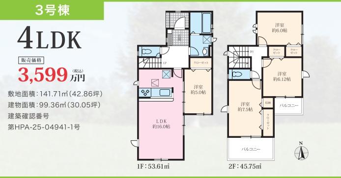 | 販売価格 | 3599万円~4299万円 お問い合わせはこちら | ||||