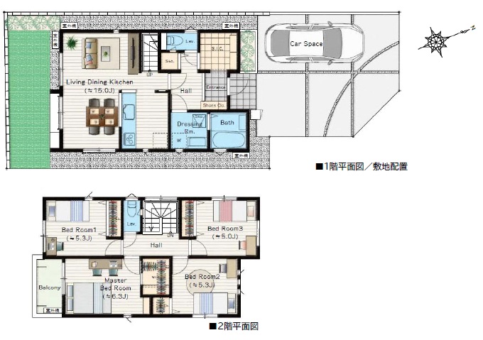 土地面積土地:120.31m2〜120.45m2 建物:94.81m2〜96.26m2