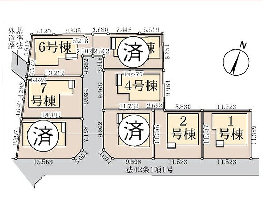 | 道路付け | 7号棟:東5m /6号棟:東5m /1号棟:南4m /2号棟:南4m /4号棟:西5m | 機構融資 | - | ||