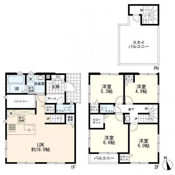 2階建■4LDK■LDK18帖以上■対面キッチン■スカイバルコニー