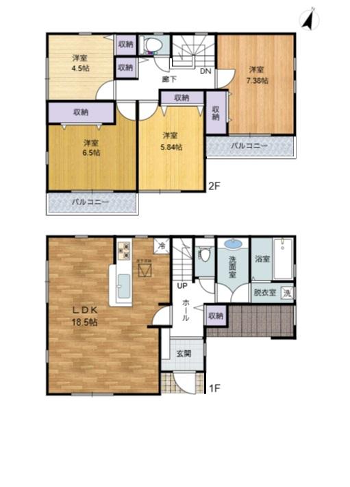 | 建物面積 | 105.36㎡・111.79㎡ | 土地面積 | 133.47㎡・144.43㎡ | ||