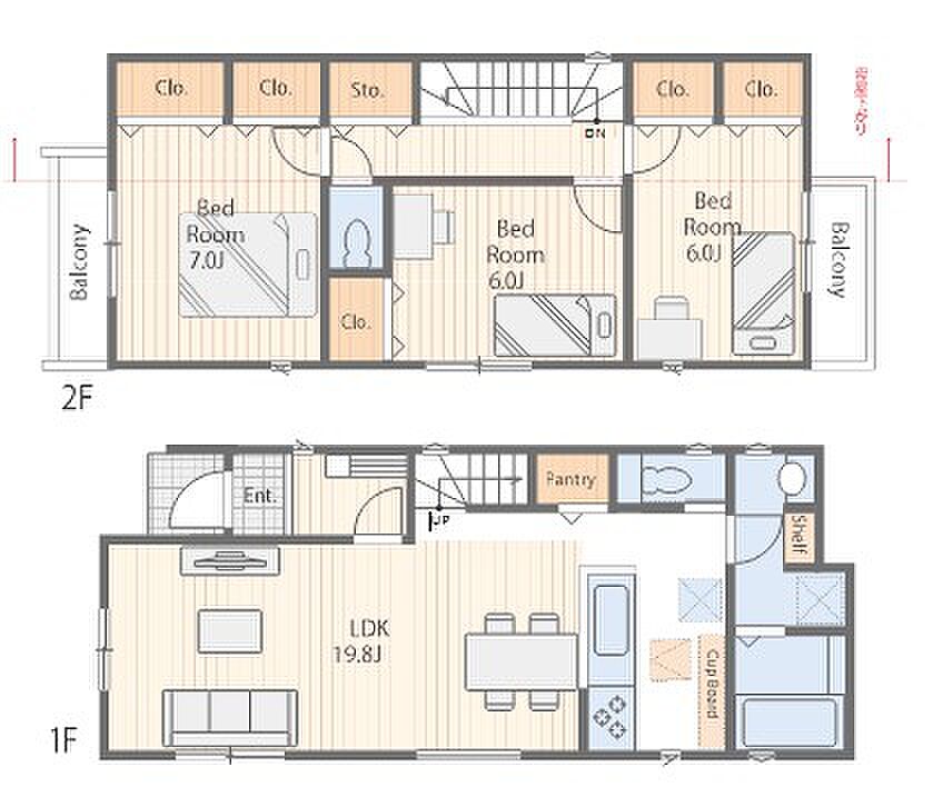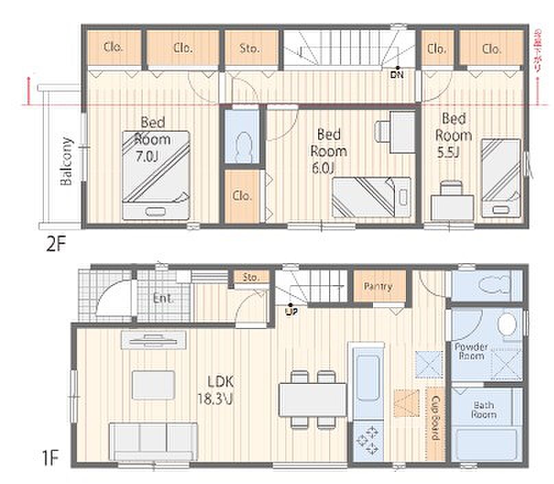 | 建物面積 | 96.05m2 | 土地面積 | 114.45m2~116.96m2 | ||