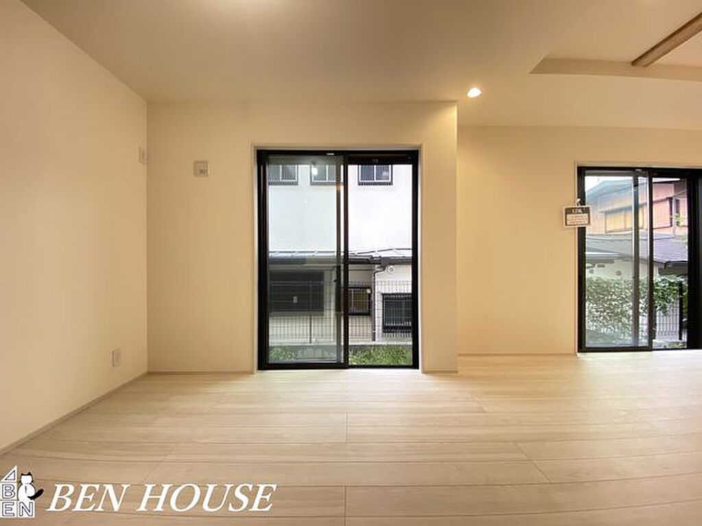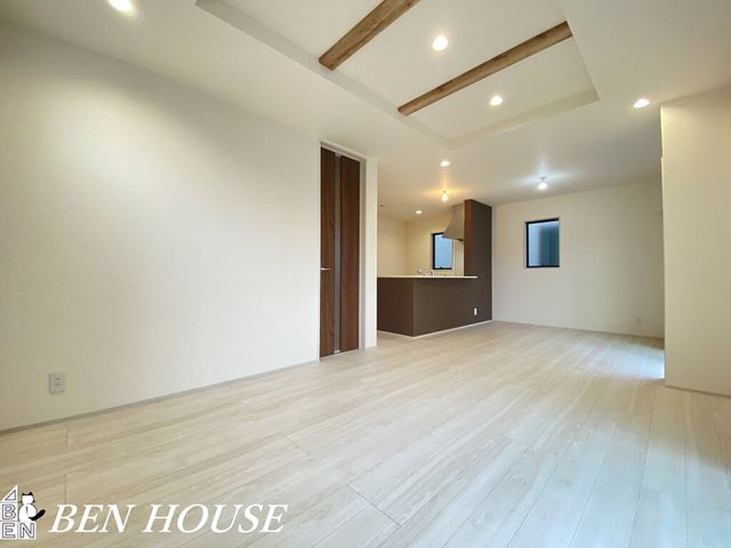 ・対面キッチンで一体感のあるLDKではたくさんの窓から入り込む太陽光で明るく開放感のある大空間となっています・前面道路から奥に建っており、通りからの視線を感じず寛げてプライバシーも確保されますね