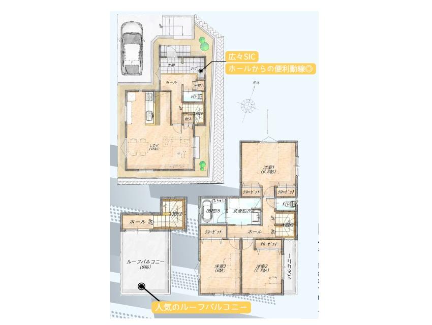 ※土地(建築条件なし)で「建物プラン例」が表記してある時、そのプラン例は特定の建築請負会社によるもので、当該建築請負会社以外で建てた場合、同様のものが同価格で建てられるとは限りません。また建築請負会社を特定するものではありません。
