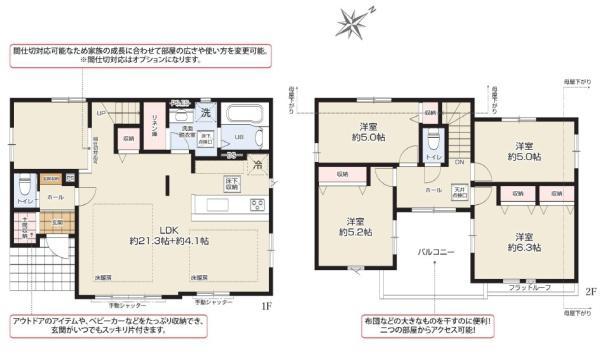 ※建築条件土地の情報内に掲載されている、建物プラン例は、土地購入者の設計プランの参考の一例であって、プランの採用可否は任意です。