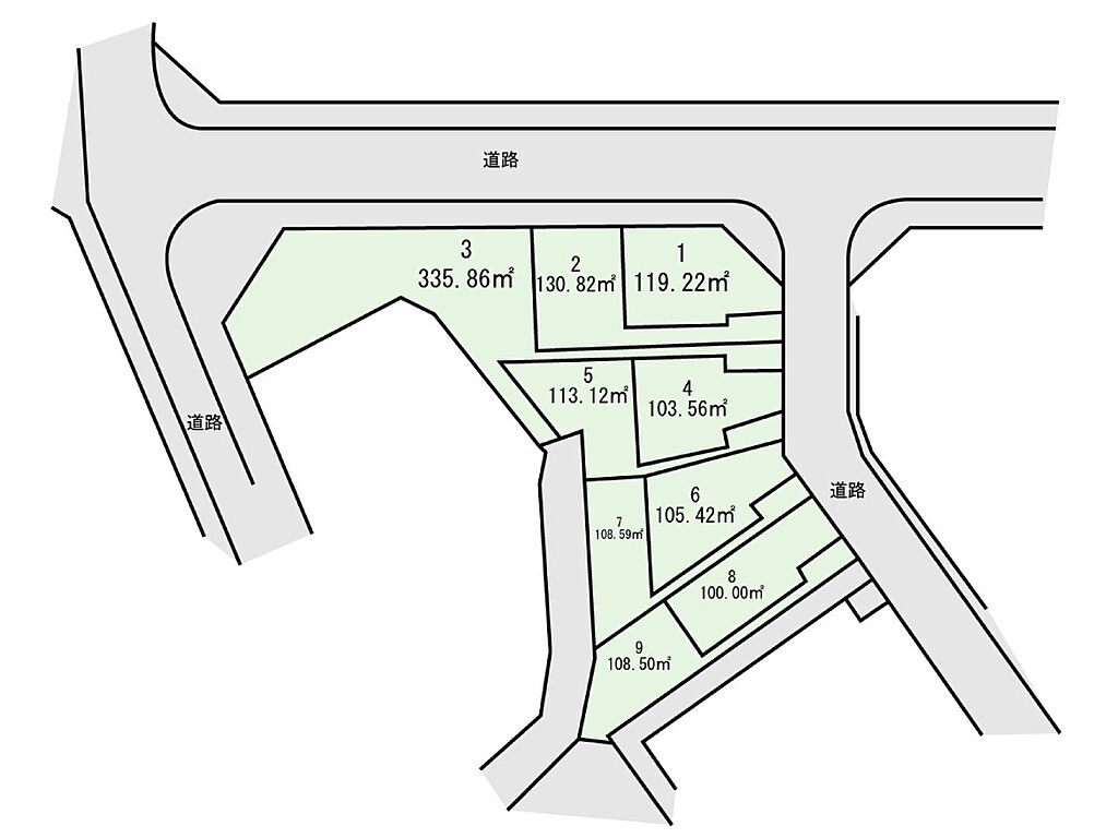| 道路付け | 5区画:北東6m /7区画:北東6m 南4m | 機構融資 | - | ||