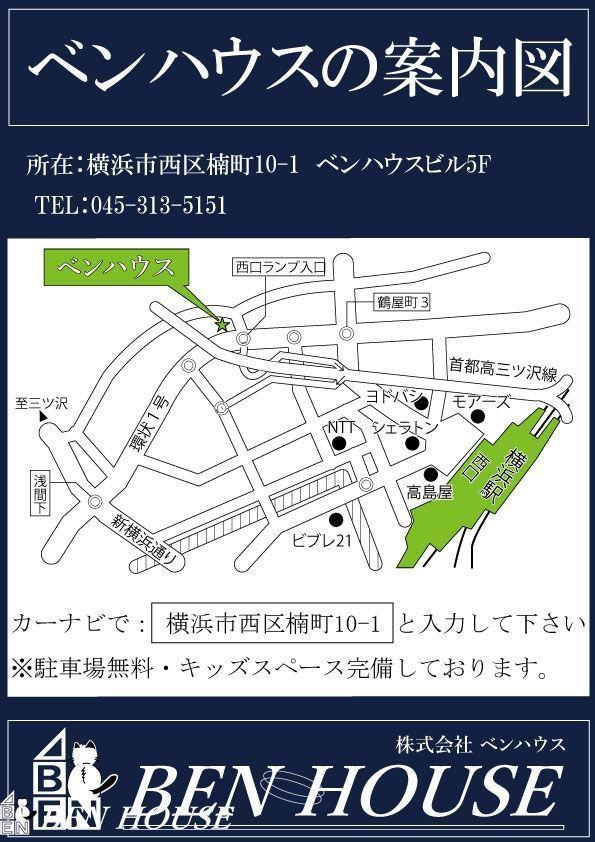 モデルルーム情報 | 現地見学会(事前に必ず予約してください)日程/公開中時間/9:30~17:00ご見学をご希望のお客様、土日はもちろん、平日のお仕事帰りのご見学も大歓迎♪お気軽に下記のお電話フォームよりご連絡下さい。TEL【0120-568563】通話料無料〈ご見学所要時間目安〉●お問い合わせ物件のご見学【30分~1時間】●いくつかの物件を合わせてご見学【1物件につき20~30分】その他にも・・・・「私はローンいくら借りられるのだろう?」・「買替えなので、自宅がいくらで売却できるか知りたい」 ・「車のローンがあるけど大丈夫かな?」・「頭金は、どれくらいないと買えないの?」・「自営業者はローン通りにくいって本当?」などなど、住宅購入はわからないことばかり・・・。資金計画やライフシュミレーションのご相談も合わせて承ります。ベンハウスは「横浜」駅より徒歩8分、駐車場、キッズルーム完備!お客様のご来社、お問い合わせ心よりお待ちしております。 | ||||