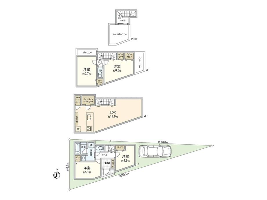 | 構造および階数 | 木造3階建 | 建ぺい率・容積率 | 80%・300% | ||