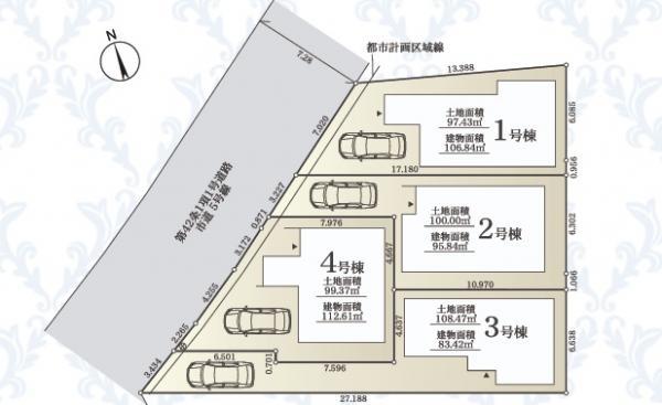 建物面積 | 83.42㎡・106.84㎡(実測) | 土地面積 | 97.43㎡・108.47㎡(実測) | ||