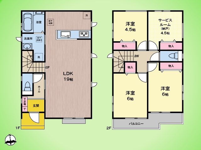 土地面積土地:104.18m2〜111.99m2 建物:92.32m2〜97.29m2