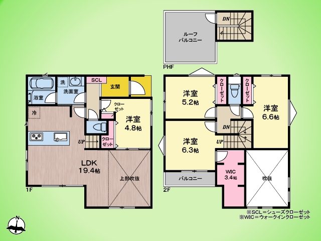 土地面積土地:112.11m2〜117.51m2 建物:100.19m2〜100.4m2