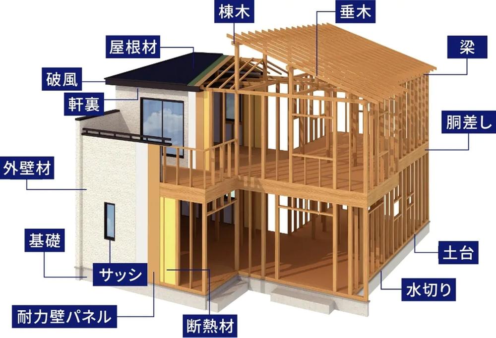 | 設備 | フラット35Sに対応 / 地盤調査済 / 駐車2台可 / 市街地が近い / システムキッチン / 浴室乾燥機 / 全居室収納 / 駅まで平坦 / 閑静な住宅地 / LDK15畳以上 / 整形地 / シャワー付洗面化粧台 / 対面式キッチン / ハイルーフ駐車場 / トイレ2ヶ所 / 浴室1坪以上 / 2階建 / 温水洗浄便座 / 床下収納 / 浴室に窓 / TVモニタ付インターホン / ウォークインクローゼット / シューズインクローク / 全室2面採光 / ルーフバルコニー / 浄水器 | ||||
