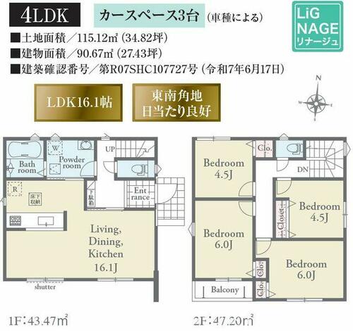 | 建物面積 | 90.67㎡ | 土地面積 | 115.12㎡ | ||
