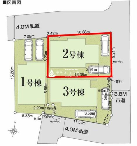 | 私道負担・道路 | - | 道路付け | 北 4.0m 私道 位置指定有 東 3.8m 公道 | ||