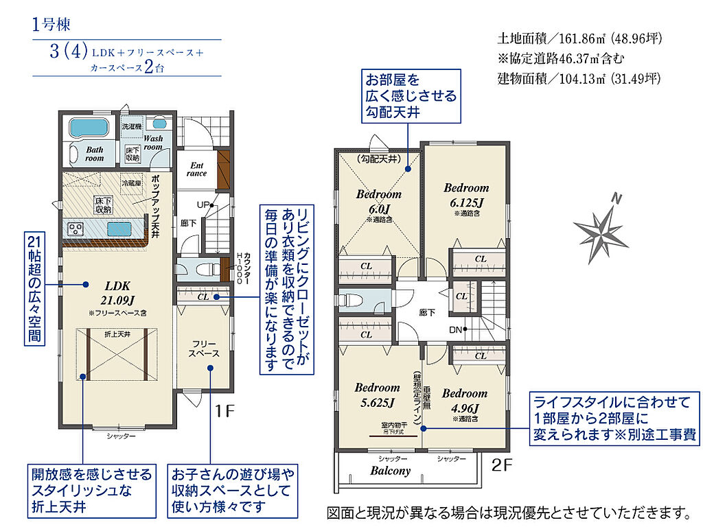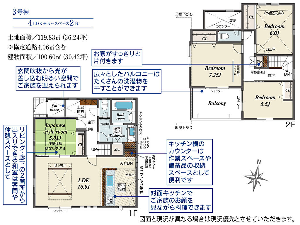 | 建物面積 | 100.60m2(約30.43坪)~104.13m2(約31.49坪) | 土地面積 | 119.83m2(約36.24坪)~161.86m2(約48.96坪) | ||
