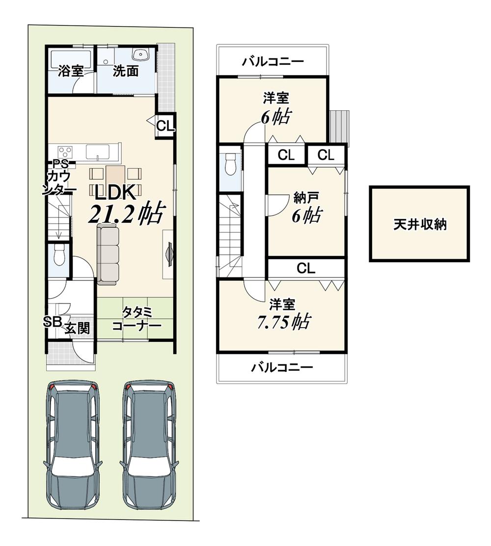 ※写真に写っている、またはパース(絵)や間取り図に描かれている家具や車などは、特にコメントがない場合、販売価格に含まれません。