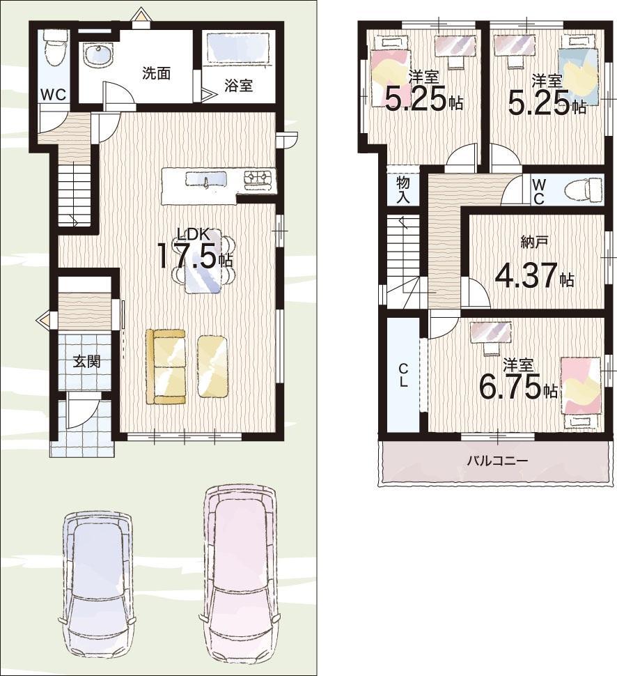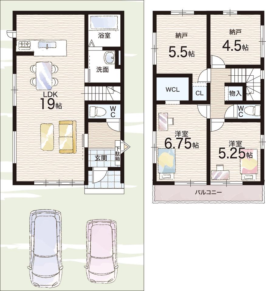 ※土地(建築条件なし)で「建物プラン例」が表記してある時、そのプラン例は特定の建築請負会社によるもので、当該建築請負会社以外で建てた場合、同様のものが同価格で建てられるとは限りません。また建築請負会社を特定するものではありません。