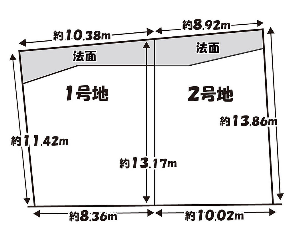| 建物面積 | - | 土地面積 | 102.97m2(1号地)~105.11m2(2号地) | ||