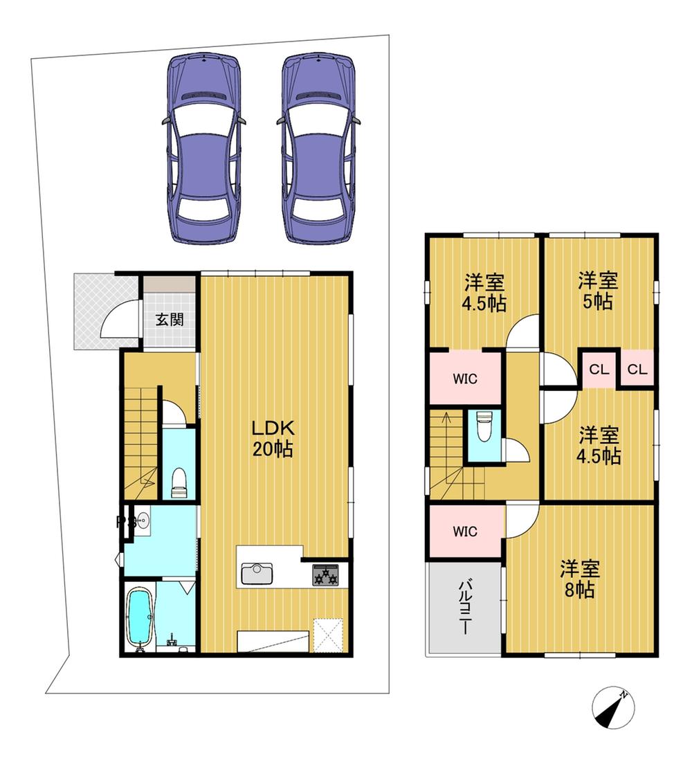 | 建物面積 | 94.8㎡~101.85㎡(登記) | 土地面積 | 133.48㎡~153.18㎡(登記) | ||