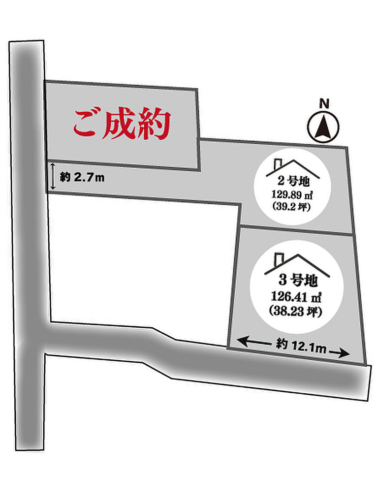 | 建物面積 | - | 土地面積 | 有効:126.41m2(3号地)~有効:129.89m2(2号地) | ||