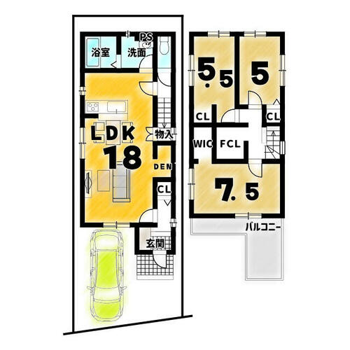| 建物面積 | 86.11㎡ | 土地面積 | 87.58㎡ | ||