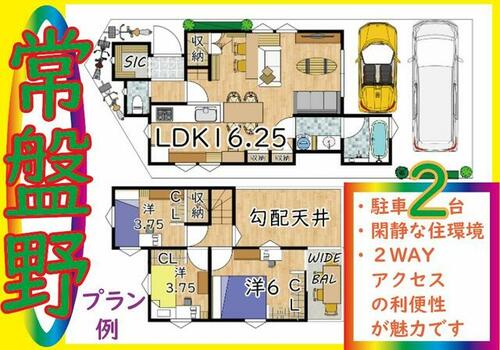 | 備考 | 月々返済例→自己資金10万円、金利0.6%、40年返済の場合、月々返済額¥87,425。・価格にご注目。常盤野小区にて新築2階建て住宅の登場です。角地・前道広々の開放感、閑静で利便性の高い3拍子揃う立地条件が魅力です。 | ||||