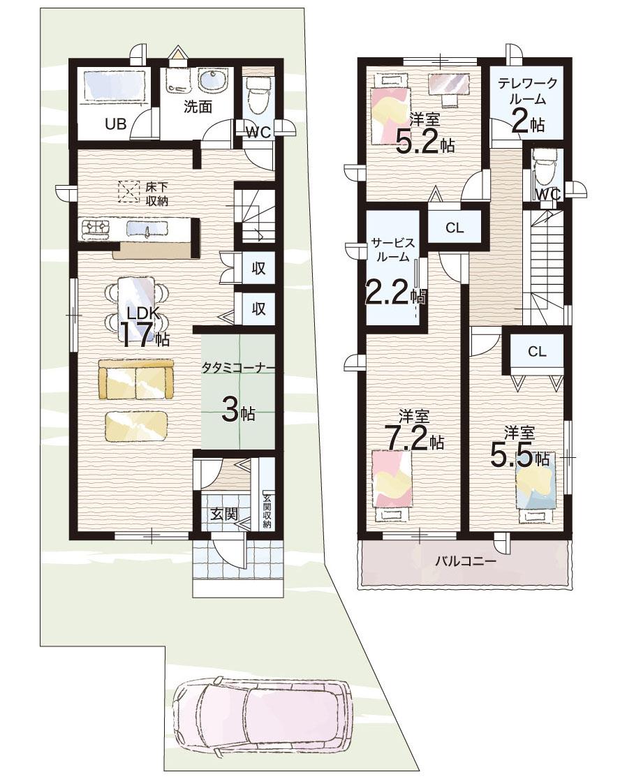 ※写真に写っている、またはパース(絵)や間取り図に描かれている家具や車などは、特にコメントがない場合、販売価格に含まれません。