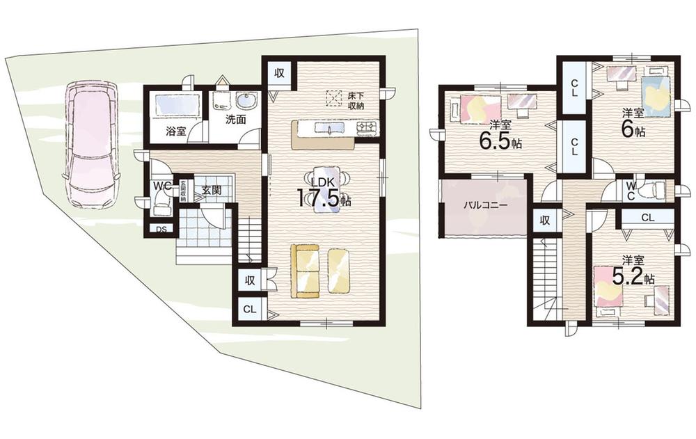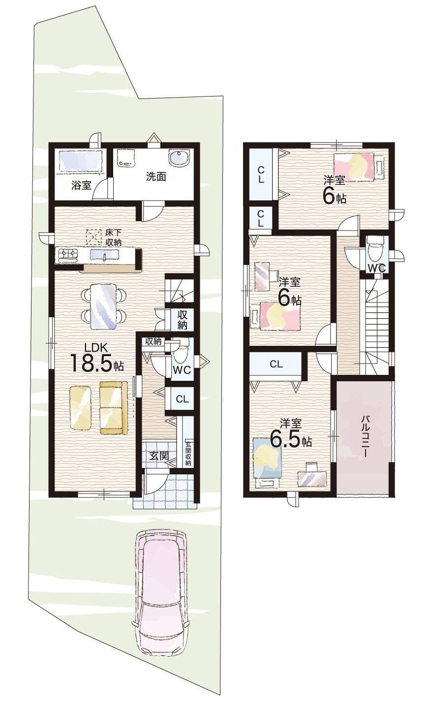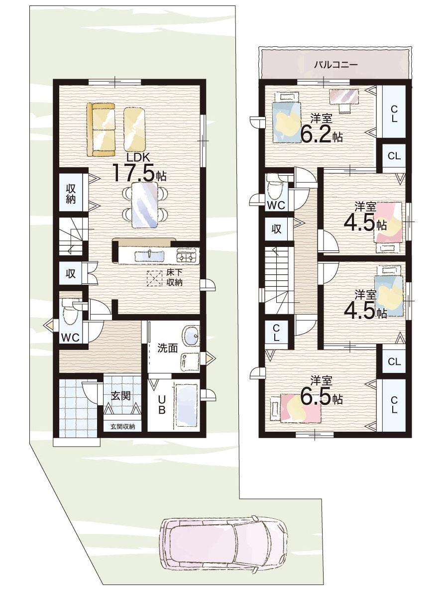 ※土地(建築条件なし)で「建物プラン例」が表記してある時、そのプラン例は特定の建築請負会社によるもので、当該建築請負会社以外で建てた場合、同様のものが同価格で建てられるとは限りません。また建築請負会社を特定するものではありません。