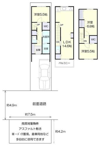 | 私道負担・道路 | - | 道路付け | 東 4.9m 私道 接面3.7m西 4.9m 私道 接面8.0m | ||
