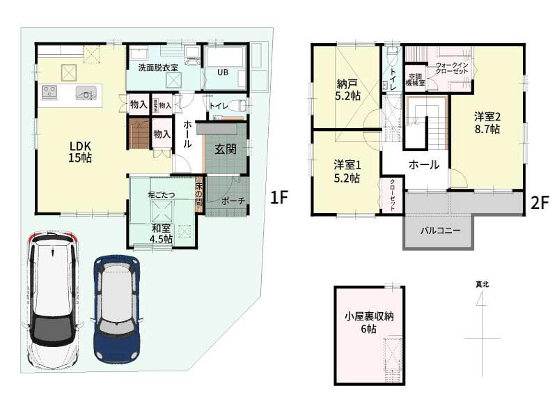 | 設備 | 長期優良住宅認定通知書 / 設計住宅性能評価書 / 建設住宅性能評価書(新築時) / BELS/省エネ基準適合認定書あり / フラット35・S適合証明書 / 省エネルギー対策 / フラット35Sに対応 / 太陽光発電システム / 高気密高断熱住宅 / 地盤調査済 / 駐車2台可 / 2沿線以上利用可 / 省エネ給湯器 / 南向き / システムキッチン / 浴室乾燥機 / 陽当り良好 / 閑静な住宅地 / LDK15畳以上 / 前道6m以上 / 庭 / シャワー付洗面化粧台 / 対面式キッチン / ワイドバルコニー / トイレ2ヶ所 / 浴室1坪以上 / 2階建 / 南面バルコニー / 複層ガラス / 温水洗浄便座 / 浴室に窓 / TVモニタ付インターホン / 節水型トイレ / 通風良好 / 全居室フローリング / IHクッキングヒーター / リビング階段 / 全居室複層ガラスか複層サッシ / 全室2面採光 / ルーフバルコニー / 平坦地 / 屋根裏収納 / 開発分譲地内 / 食器洗乾燥機 / オール電化 / 浄水器 / バルコニー・屋上に水栓あり / スマートキー | ||||