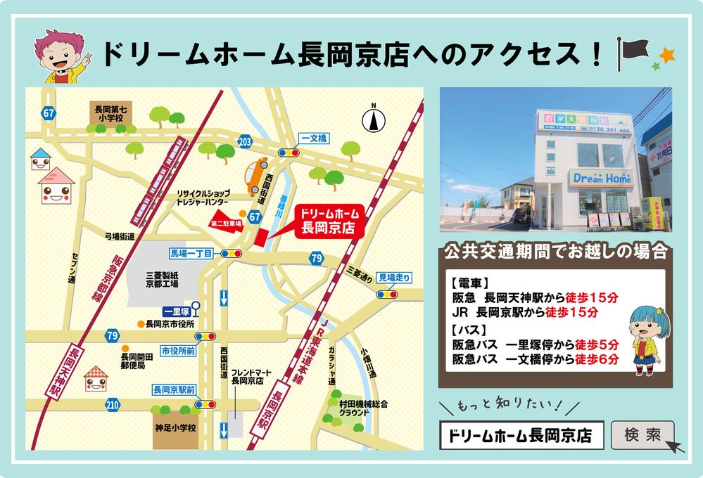 (株)ドリームホーム長岡京店[国土交通大臣(1)第010161号] 京都府長岡京市馬場2-6-13 【所属団体】 国土交通大臣(1)第010161号(公社)全日本不動産協会京都府本部会員 (公社)近畿地区不動産公正取引協議会加盟 | ||||