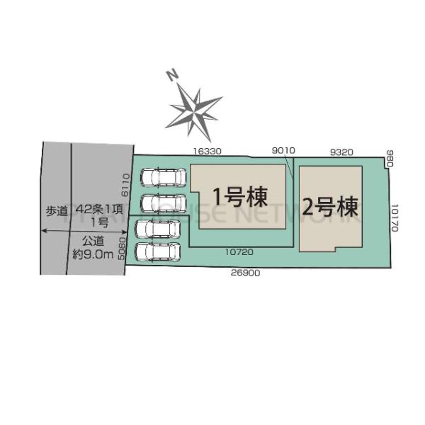 土地面積土地:131.66m2(約39.82坪)〜164.90m2(約49.88坪) 建物:100.61m2(約30.43坪)〜103.50m2(約31.30坪)