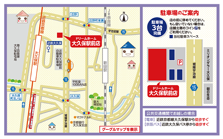 株式会社ドリームホーム 大久保駅前店[国土交通大臣 (1) 第 10161 号] 京都府宇治市広野町西裏65-3 【所属団体】 (公社)全日本不動産協会京都府本部 | ||||