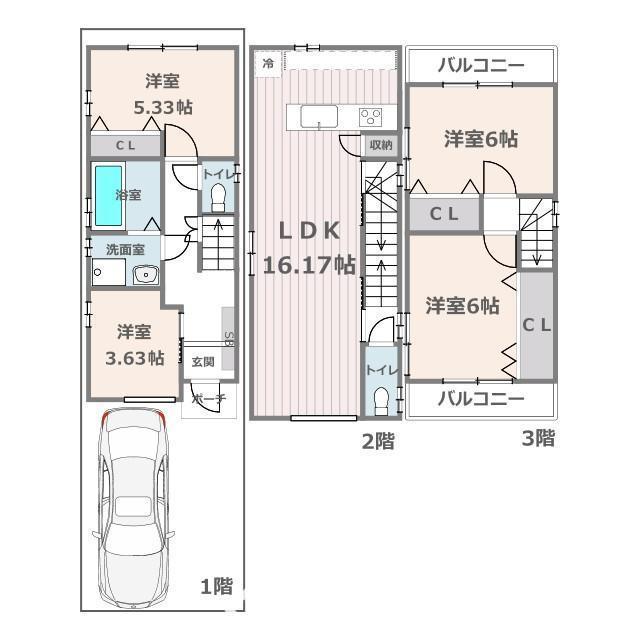 | 構造および階数 | 木造3階建 | 建ぺい率・容積率 | 80%・160% | ||