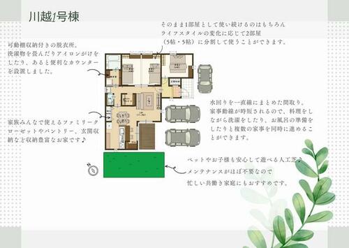 | 備考 | 水道加入金66000円下水工事負担金220000円別途必要・【価格改定】■平屋■川越北小学校徒歩10分圏内■駐車3台可■人工芝■1種換気■ご夫婦2人暮らしの方にもおすすめ◎・【オープンハウス/モデルハウス】~2026/3/15(10:00~18:00)予約制 | ||||