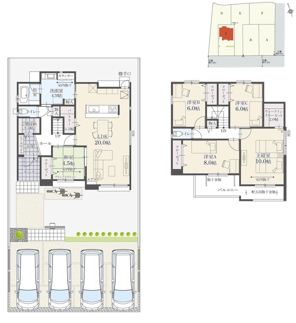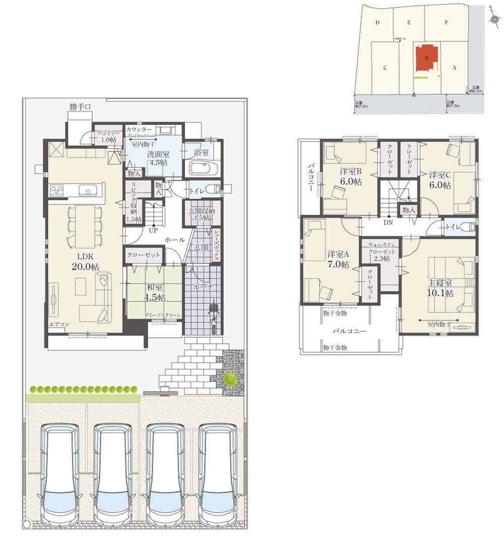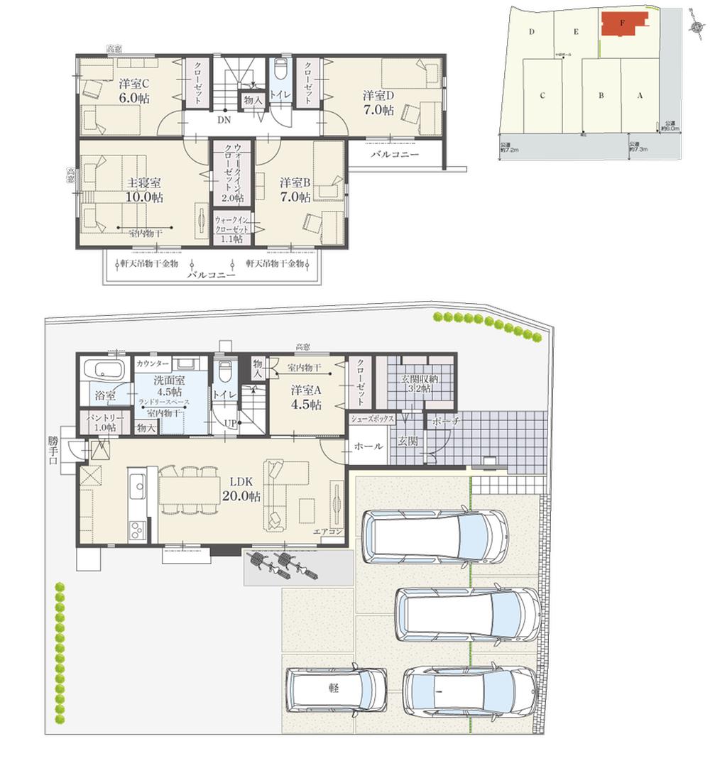 | 建物面積 | 135.56㎡~136.72㎡(41.00坪~41.35坪) | 土地面積 | 211.43㎡~277.95㎡(63.95坪~84.07坪)(登記) | ||