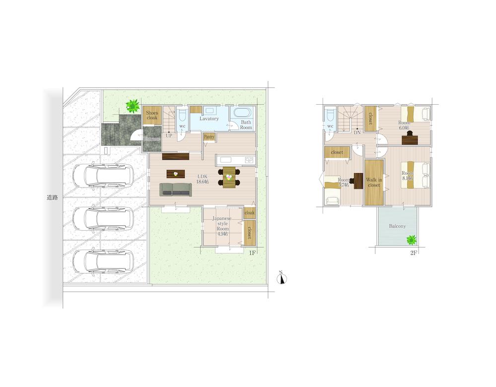 ※土地(建築条件なし)で「建物プラン例」が表記してある時、そのプラン例は特定の建築請負会社によるもので、当該建築請負会社以外で建てた場合、同様のものが同価格で建てられるとは限りません。また建築請負会社を特定するものではありません。