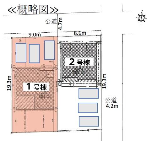 | 私道負担・道路 | - | 道路付け | 北 4.7m 公道 接面8.6m東 4.2m 公道 接面19.3m | ||
