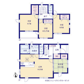 詳細を見る間取り3LDK【間取紹介】 南向きの明るい間取り 広々とスペースがとられたLDK空間 1階は共有スペース2階はプライベートスペースとメリハリのある構成建物面積106.19m²土地面積182.57m²築年月新築