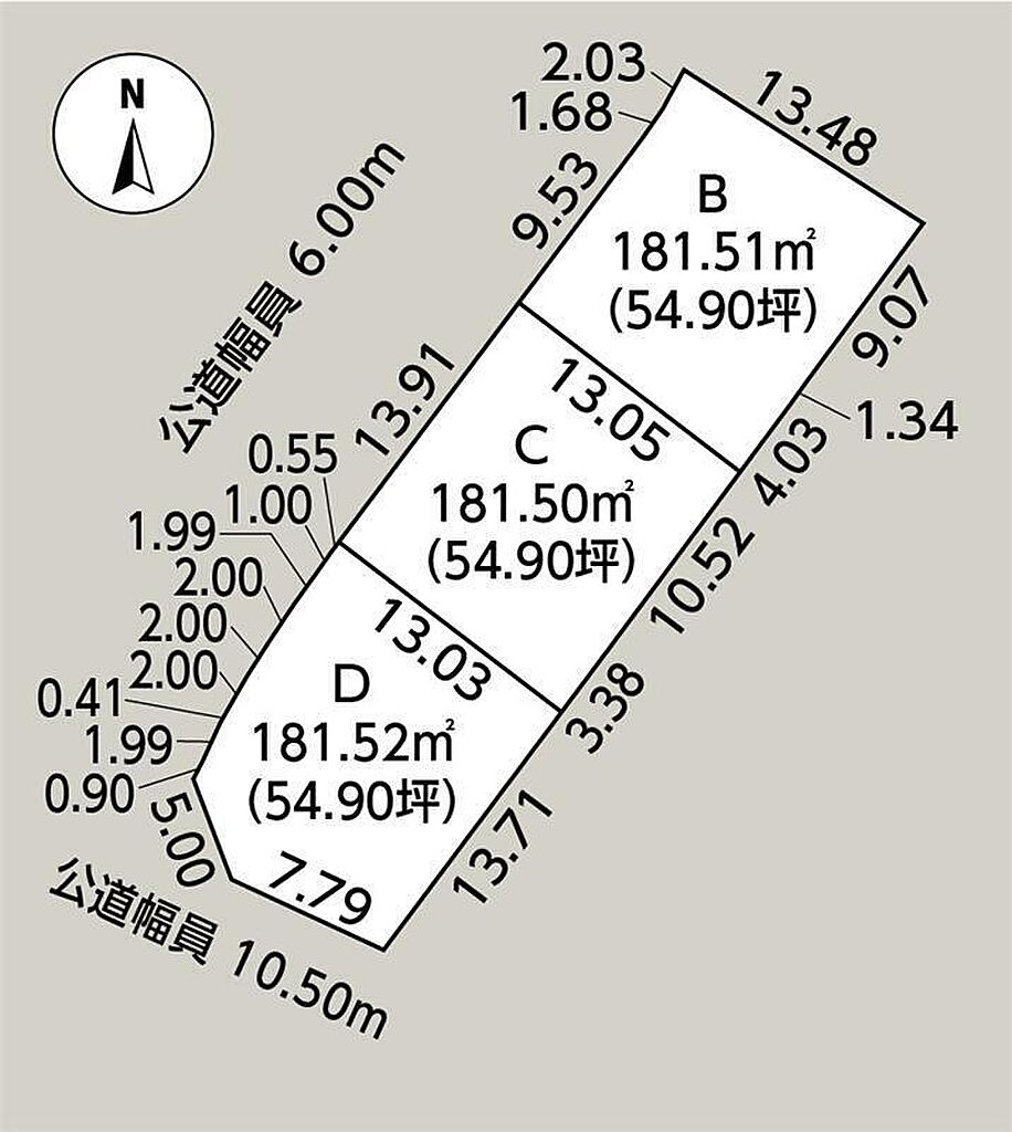 | 道路付け | 北西側公道6.00m、南西側公道10.50m | 機構融資 | - | ||