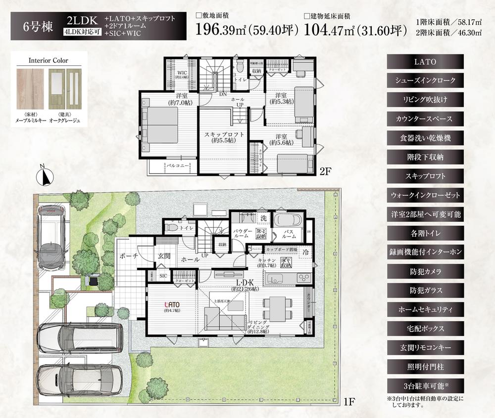 | 建物面積 | 100.05㎡~104.47㎡ | 土地面積 | 180.94㎡~196.39㎡ | ||