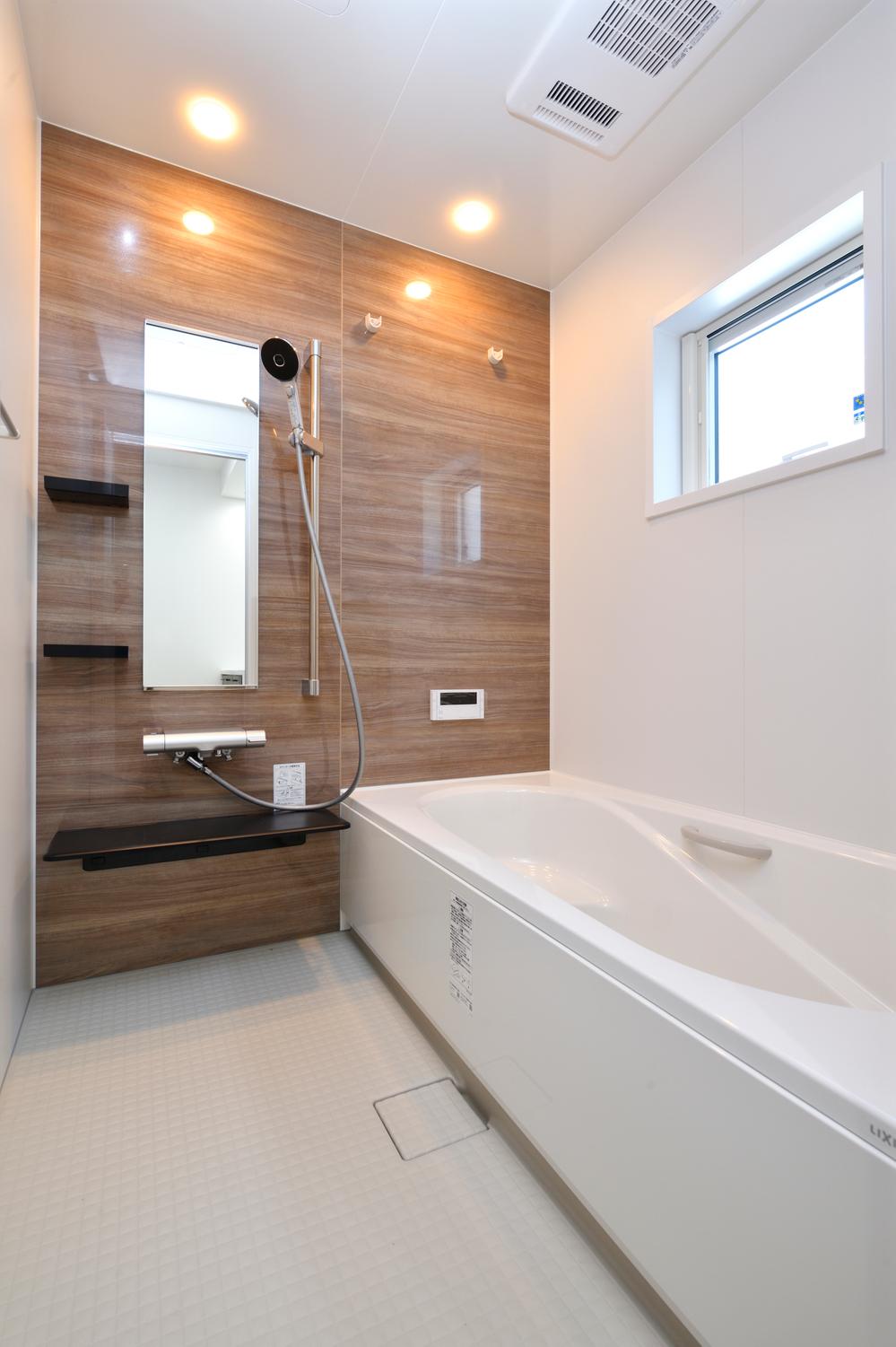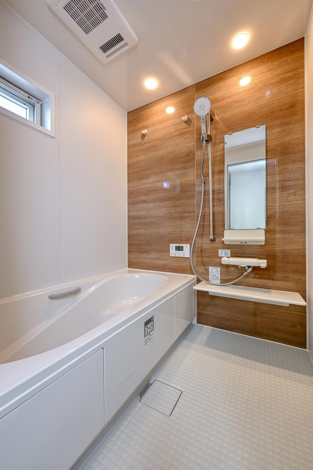 浴室乾燥・送風・暖房機能付き。ウルトラファインバブルを含んだやわらかな肌あたりのミストで、やさしく皮脂汚れを洗い流すシルクミスト吐水をはじめ全3種類の吐水モード付。(現地モデルハウス 2025年11月撮影)