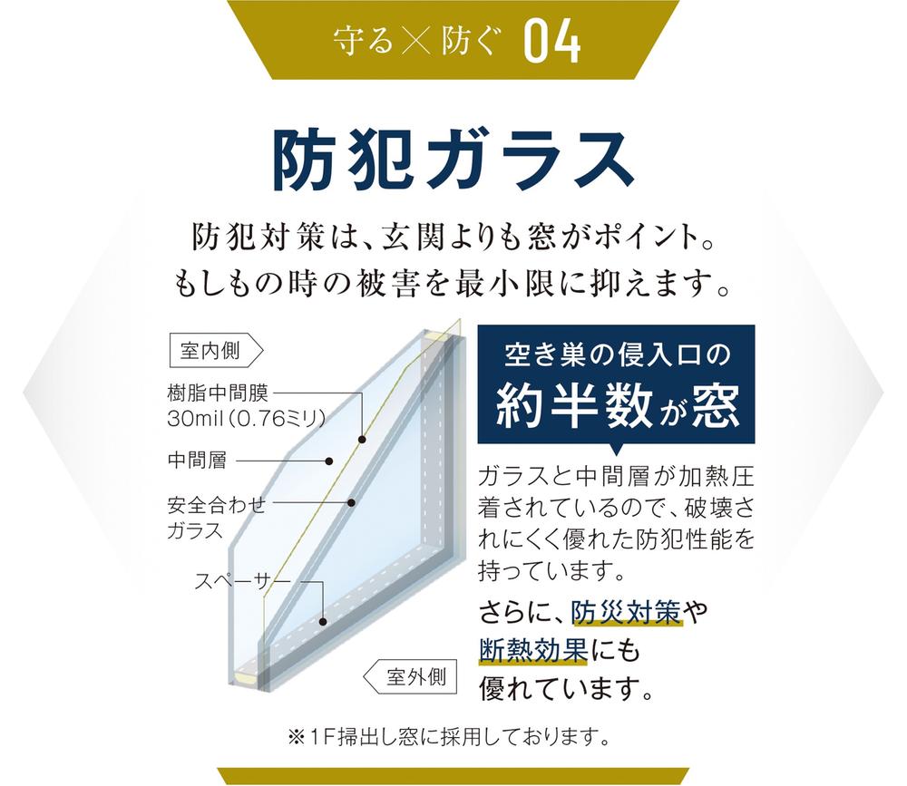 防犯対策は玄関より「窓」が大事。日本の住宅浸入手口に多い”こじ破り”対策にも大変効果的で、官民合同会議の定める”防犯性能の高い建物部品”として認定されています。※侵入しやすい引違窓(1F)に採用。